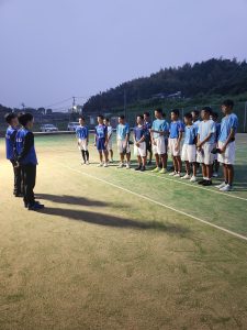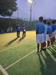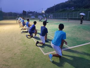 県新人戦を終えたところで照明が調整していただき、練習環境がより整いました。秋からは急に日が短くなるので有難いです。暗くなってからもボールの軌道がより明確に見えるようになり、前衛としての動き出しや判断の精度を高める練習がができそうです。団体戦が目前に迫り、チーム全体の意識も一層引き締まってきました。それぞれが課題に真摯に向き合い、互いに声を掛け合いながら質の高い練習を積み重ねています。学校はもとより、応援してくださる方々への感謝を忘れず、一戦一戦を大切に戦います。