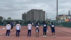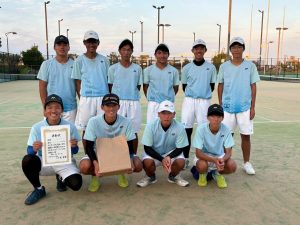 10月25日に八代市テニスコートで行われた学校対抗ソフトテニス八代大会に出場させていただきました。上位4ペアは別の動きで抜けた状態でした。結果はAチームが優勝、Bチームは残念ながら初戦敗退でした。強風の中で、どのようにゲームメイクをしていくかを考えながら試合をしました。準決勝は、玉名工業Aと3番勝負となり、苦戦しながらもリードを守りきり勝つことが出来ました。松本・東方は安定した試合運びでチームに安心感を与えました。友田・黒木は、ダブル後衛らしい粘り強いプレイをしました。決勝戦での川﨑・立花は、苦しい試合ではありましたが、団体戦の意義を理解し、相手の1番手に負けない試合ができたと思います。今後の試合に向けてチーム一丸となり、技術を磨き、更に強いチームになれるよう日々の練習に励んでいきます。関係の皆様、これからも応援・ご指導よろしくお願いします。 副主将:黒木