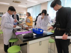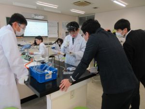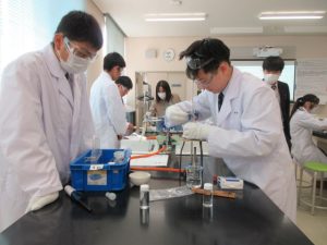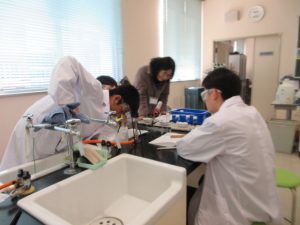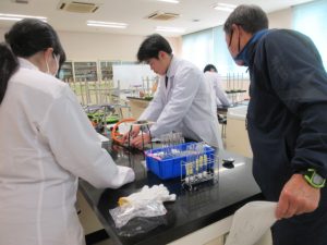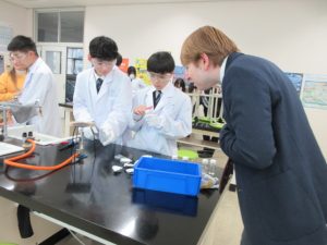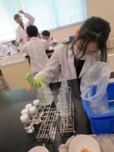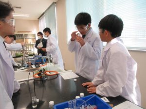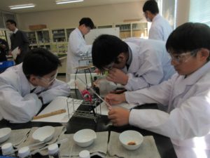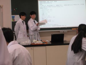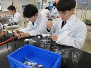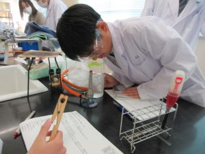 1班から5班の5つの班に分かれ、実験の仮説・予想、実験の方法、準備物などの実験計画を立て、実験計画書を作成し、計画書に基づき、実験を行いました。