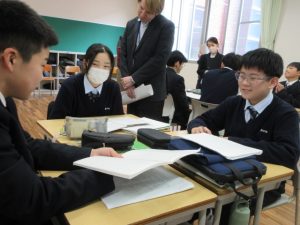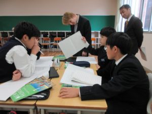 12月12日(金)寺本先生が、中学1年生(1J)で英語科の研究授業を行いました。