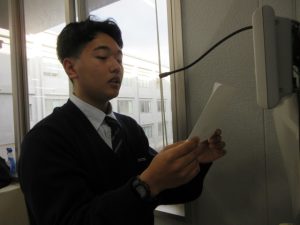 12月17日(火)学校交通安全日(第705回)の放送を生徒会会計の中嶋さん(1年普通科5組:1F5)が担当しました。