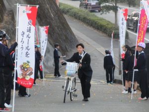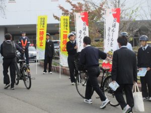 11月17日(月)交通委員による朝のヘルメット啓発活動を行いました。