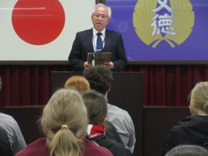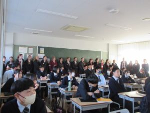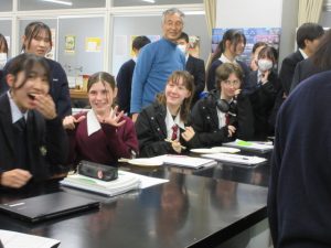 Clairvaux MacKillop College(Austraria)来校 12月3日(水)クレアヴォー・マッキロップ・カレッジ学校から、生徒21名、引率の先生5名が来校されました。オーストラリアのブリスベンにある学校です。今年の7月~8月にかけて、文徳生10名が訪問した学校です。12月5日(金)までの3日間、本校で活動に参加されます。最初に、多目的ホールで歓迎会を行い、その後、校内見学や授業体験などを行いました。
