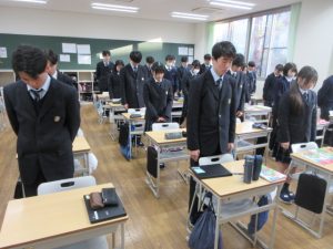 そして、交通事故で亡くなられた方々のご冥福をお祈りし、交通安全を祈って、全校生徒で黙とうを捧げました。