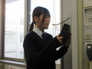 12月17日(水)は学校交通安全日(第717回)です。校内放送を、生徒会副会長の井手口さんが担当しました。