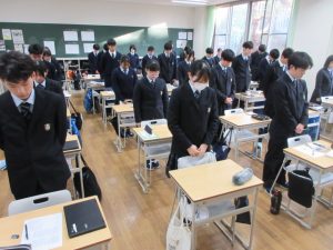 そして、交通事故で亡くなられた方々のご冥福をお祈りし、交通安全を祈って、全校生徒で黙とうを捧げました。