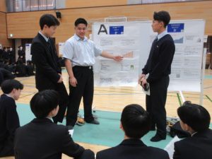 12月18日(木)高校全学年による総合的な探究の時間発表会を体育館で行いました。