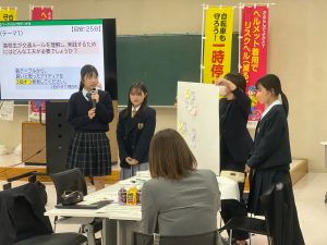 の二つのテーマについて、参加校の出席者がグループごとに互いに意見を出し合いました。
