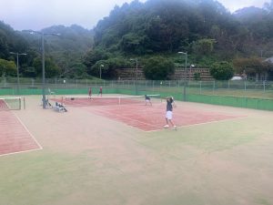 まず、1日目は4チーム編成でのリーグ戦(全部で4リーグ)で、各対戦は団体形式で行われました(ダブルㇲ2,シングルス1)。文徳からは1チーム参加し、同じリーグの相手は八代工業高校、熊本高校、東稜高校でした。八代工業高校と熊本高校には勝利しましたが、東稜高校には敗れてしまいました。その結果、2位で1日目のリーグ戦を終えました。