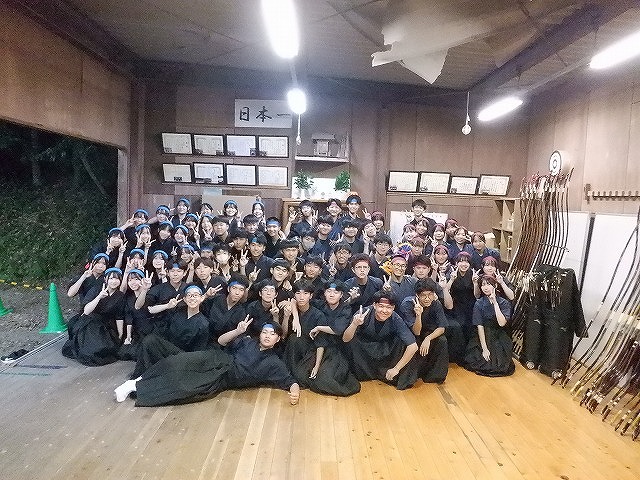 女子B:2次予選16位タイ(参加59チーム中)「2F村﨑、2F田上、1F甲斐、1F山本、1JS加茂、1F三好、1F村上」決勝トーナメント進出のための競射3本目の末、惜しくも予選敗退。