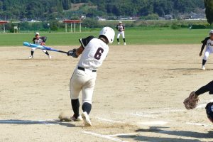 守田内野手より「九州高校さんと試合をさせていただきました。打撃では塁に出てもバントが上手く決まらず、なかなか走者を進めることができず、得点につなげられない場面が多くありました。逆に守備では取れるアウトを取れず、得点につなげられてしまいました。1週間後には新人戦があるので、残りの練習期間、試合を通じて学んだことを活かし、ミスを減らし、一つひとつのプレーを大切にしていこうと思いました。」