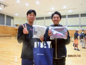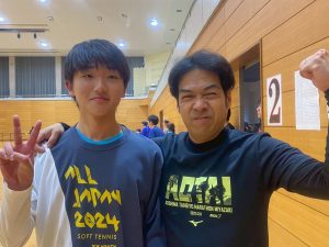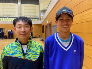 12月26日27日に北九州市穴生ドームで開催された西日本選抜大会(24チーム)に出場させて頂きました。1日目は4校リーグ戦でリーグ1位で終わることができました。2日目はトーナメント戦で3回戦の大分商業にマッチポイントを取ったのにも関わらず3番勝負で負けベスト8の結果で今年最後の大会を終了しました。今回の団体戦では、ドームという安定した環境の中で試合に臨むことができたにも関わらず、サービスやレシーブといった基本的な部分でのミスが多く、試合の主導権を相手に握られることが多かったように思えます。また、試合の入りから流れを作ることができず、団体戦としてチームに勢いをもたらすことができなかった点は特に反省すべき点です。ラリー中では状況判断が遅れ、無理なコース選択や消極的なショットが目立ちました。本来得点につなげなければならないチャンスボールを確実に決め切ることができず、攻め切る力不足を感じました。また、相手のミスを待つプレーが多くなり、自分たちから仕掛ける姿勢が欠けていたと思います。ペア間での声かけや戦術の確認が十分でなく、前衛・後衛の役割意識が曖昧になったことでポジションが乱れ、連携ミスにもつながりました。前衛はネット前で十分なプレッシャーをかけることができず、抑えなければならない場面でハーフポジションになってしまい、決定力を欠いたことは大きな課題です。さらに、ポイントを失った後の切り替えが遅く、競った場面で気持ちの弱さが出てしまい、連続失点を招いてしまいました。団体戦では一つ一つのポイントがチーム全体の流れに直結するため、その責任を改めて感じました。今回の試合で出た課題を明確にし、点の取り方・取られ方注視しながら、攻撃の選択や展開の意識を変えていきます。次の団体戦では、チームに良い流れを持ち込み、勝利に貢献できるよう、日々の練習から取り組んでいきます。2日間、先生、保護者の方々応援、サポート、アドバイスありがとうございました。