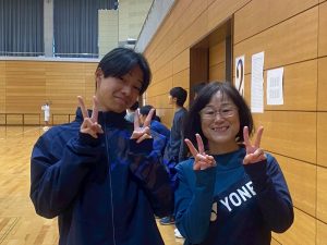 1月10日に御船体育館にて毎年恒例の文徳高校親子テニス大会を行いました。普段はなかなか見ることのできない、保護者の皆さまがワーワー・キャーキャーと楽しそうにテニスをされている姿を見ることができ、私たち生徒としてもとても嬉しく、ありがたい時間となりました。午後からは、3年生対現役1・2年生の試合を行い、3―2で3年生が勝利しました。その後、景品の抽選会も行い(この景品は選手が1年間をかけて大会等で頂いたものが中心)、終始盛り上がり、素晴らしい1日を過ごすことができました。また、私学大会・全国選抜大会が控えているため、今後は体育館でのプレースタイルの練習なども増やし、大会に向けて準備を進めていきたいと思います。これからも応援よろしくお願いします。保護者の皆さまには、1日を通して景品の準備等にご協力いただき、ありがとうございました。また、2026年度の開催もよろしくお願いします。川田先輩(昨年のマネージャー)、林田先生・中村先生には、進行等で大変お世話になりました。ありがとうございました。