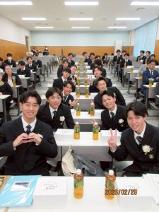 2月28日に卒業式が行われました。その後、ソフトテニス部の卒部式を開催しました。林田先生のお祝いのお話のあと、1・2年生を代表して挨拶をさせていただきました。先輩たちへの多くの思い出や感謝を伝えることができたと思います。その後、昼食をとりながら林田先生が作成してくださったスライドショーを鑑賞し、3年生全員から最後の言葉をいただきました。これまで一緒に戦ってきた3年生が引退し、背中を追い続けてきた存在がいなくなると思うと、とても寂しく感じます。しかし、3年生が築いてくださった伝統を私たちが受け継ぎ、目の前の大会一つひとつで勝ち切れるよう努力を重ねていきます。卒業生の皆様、ご卒業おめでとうございます。そして、準備等をしてくださった先生、保護者の皆様、本当にありがとうございました。