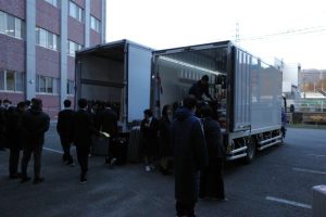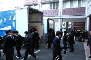 1月20日(火)1年生修学旅行の荷物を前もって輸送しました。朝7:20から開始し、4トントラックと3トントラックに積み込み運んでいただきました。