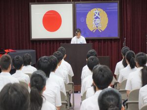 そして正式な始まりとなる始業式が、8月26日(月)1限目に本校多目的ホールにて行われました。