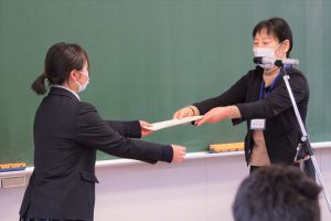 交付終了後は、新生徒会長が代表してあいさつを行い、