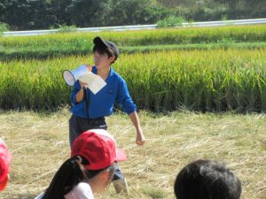 田植えや稲刈りなどの実習を通して、稲作の大切さや農業の役割、イネの生態を学ぶとともに、地域社会との交流を通じて協働して取り組むことの意義を考えてもらうことがねらいです。