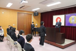 中学2年生は、沖縄修学旅行に向けて、多目的ホールにて結団式を行いました。