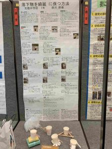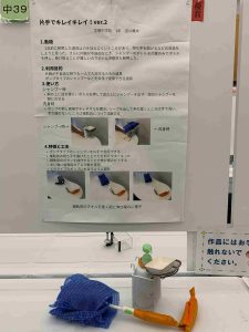12月20日(土)~21日(日)グランメッセ熊本で第60回熊本県発明工夫展が行われ、3年生(3J)の迫川さんが出品しています。作品名は「片手でキレイキレイver.2」です。