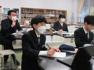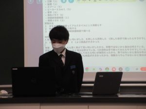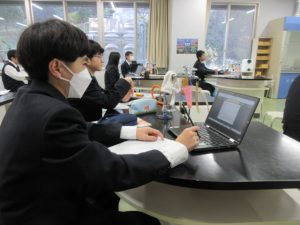 12月18日(木)中学1年生が理科の授業で総括的評価課題の実験レポートを一人一人発表しました。生徒は、自己評価、相互評価を行いました。IB(国際バカロレア)MYP(ミドル・イヤーズ・プログラム)のコーディネーターの中川先生にも参観していただきました。