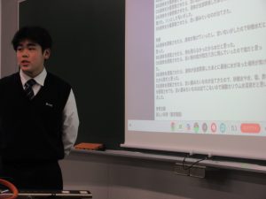 12月12日(金)寺本先生が、中学1年生(1J)で英語科の研究授業を行いました。