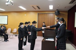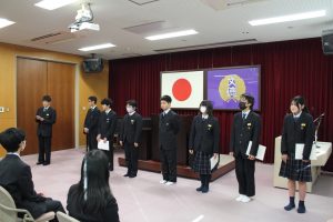 生徒会役員交代式および委嘱状授与式を実施しました。